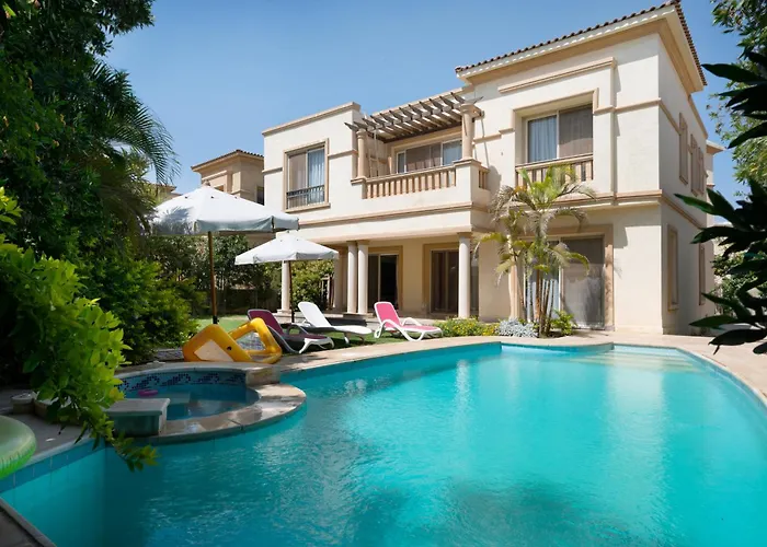 Guests can access Petrified Forest Protected Area approximately 5 km away, while Gravity Code Amusement Center is 2.4 km away. Educational highlights 3.3 km from the 4-bedroom villa include the independent English-language research American University in Cairo.